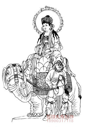 相傳普賢在中國顯靈說法的道場在四川峨嵋山,其中有萬壽寺(晉代始建時(shí)名普賢寺),寺中所塑普賢像是有代表性的法像:普賢坐在大象背負(fù)的蓮臺(tái)上,手執(zhí)如意;象身白色,六牙,四足分踏在蓮座上。白象代表愿行殷深,辛勤不倦;六牙,表示六波羅蜜──布施、持戒、忍辱、精進(jìn)、禪定、慧智,佛教稱六牙白象是菩薩所化,以表威靈,象征“愿行廣大,功德圓滿”。