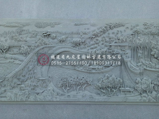 浮雕作為石雕藝術(shù)中的一種造型語言和形式,有它特有的塑造方法,它是在有限的塑造空間里對自然物象進(jìn)行體積上的合理壓縮,并通過透視和錯覺等方法向人們展示較抽象的空間效果。由于浮雕是在第三度空間上經(jīng)過了壓縮,立體的形象被壓扁,形體上也見薄,所以又往往容易被人錯誤地認(rèn)為浮雕就是圓雕的一半。