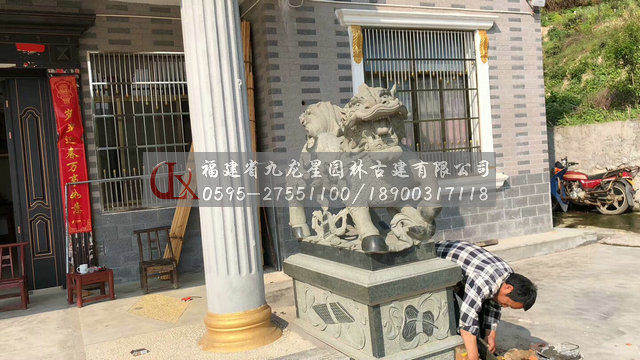 麒麟造型中石刻麒麟多在建筑、皇家建筑里出現(xiàn),其體型巨大,多以威武雄健之態(tài)出現(xiàn)。這說明,麒麟造型的比例尺寸大小是與特定的環(huán)境、風(fēng)俗、情感相聯(lián)系的。石雕麒麟的大也可以解釋為大氣、圣威、權(quán)利,具有震懾的作用。石雕麒麟的造型遵循著傳統(tǒng)文化審美的習(xí)慣,麒麟的造型特征說明其造物意象充滿了對美好與吉祥的期望。石雕麒麟的整個造型集龍頭、鹿角、獅眼、虎背、熊腰、蛇鱗、馬蹄、豬尾于一身,另外使用添加手法在下頜處加有長長的胡須,又添加翅膀,這樣,麒麟可以奔跑,可以飛翔,威武之勢讓人可望不可及。麒麟體現(xiàn)了古人對現(xiàn)實世界的主觀理想與造物的主動性,其和龍、鳳一樣成了我國傳統(tǒng)民族精神的象征。還有,石雕麒麟的擺放一般是成雙成對出現(xiàn)的,主要因為其造型講究碩大豐滿,還注重陰陽相守,忌諱殘缺不全、形單影只,其中寄托了人們“天人和諧”的精神追求,內(nèi)涵獨特而豐富。