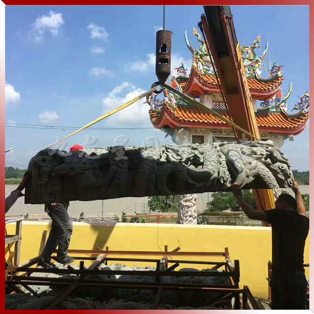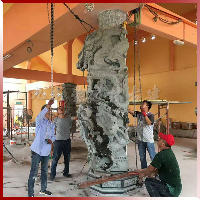 九龍星園林古建寺廟青石龍柱安裝現(xiàn)場