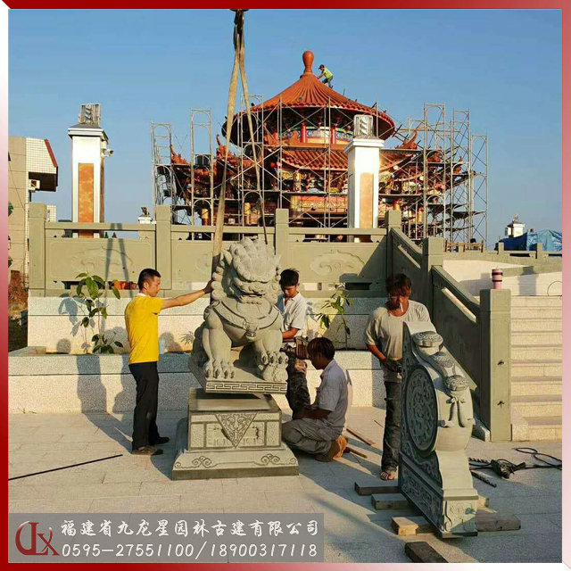 寺廟石雕獅子抱鼓石桿欄安裝
