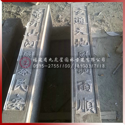 方形圓形石雕對(duì)聯(lián)柱寺院祠堂古建專(zhuān)用由福建省九龍星園林古建有限公司專(zhuān)業(yè)生產(chǎn)加工,我司常年供應(yīng)傳統(tǒng)手工寺廟雕刻精雕龍鳳柱、石雕龍柱、盤(pán)龍柱、華表龍柱、對(duì)聯(lián)柱、廣場(chǎng)文化柱等各種款式石雕柱子。