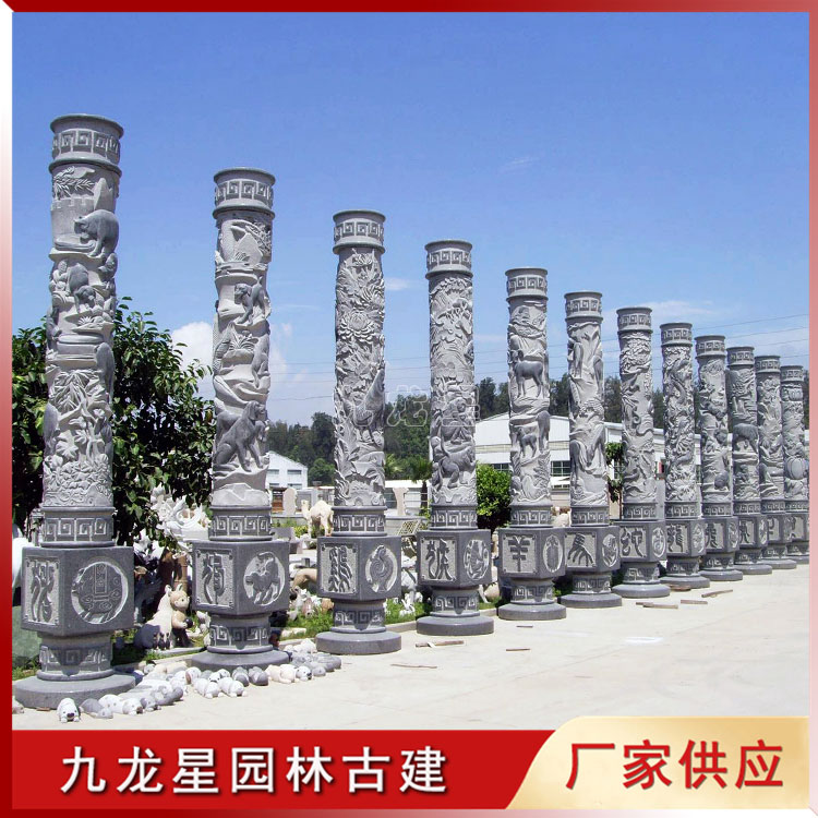 石材圓柱 十二生肖石雕文化柱 景區(qū)公園裝飾擺件