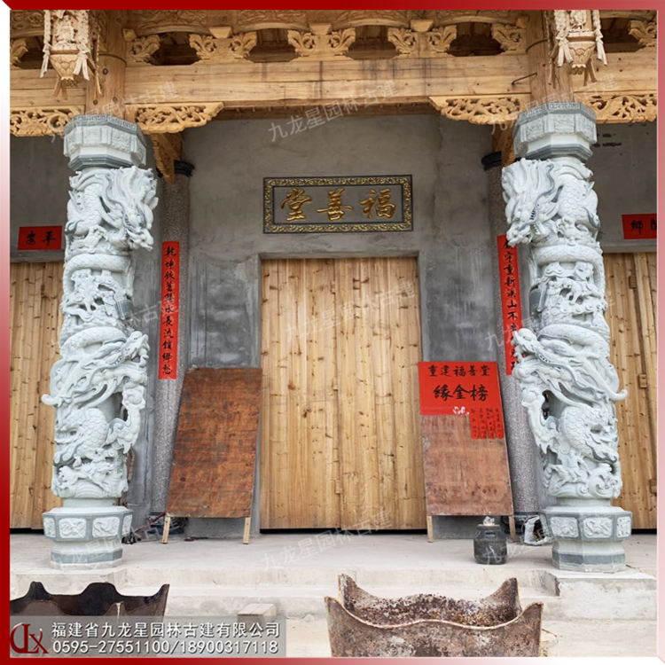 祖廟大門石雕龍柱 惠安青石石雕龍柱 手工雕刻