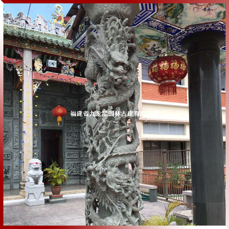 青石龍柱在傳統(tǒng)宮廟建筑里起中流砥柱作用。中國傳統(tǒng)建筑多以架構(gòu)制為結(jié)構(gòu)原則,立柱四根,上施梁枋,牽制成一“間”,成為建筑的主要單位,建筑中的墻壁僅起隔斷作用。只要柱子仍然屹立,所謂“墻倒屋不倒”,使柱子在古代建筑中成為主要的構(gòu)建。所以,古書有謂“柱之言主也,屋之主也”,石雕龍柱起著承重作用。