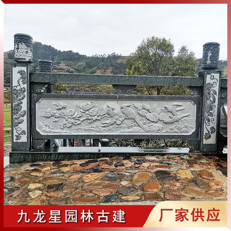 九龍星石雕定制 鳳凰牡丹浮雕 石欄桿花鳥浮雕圖片